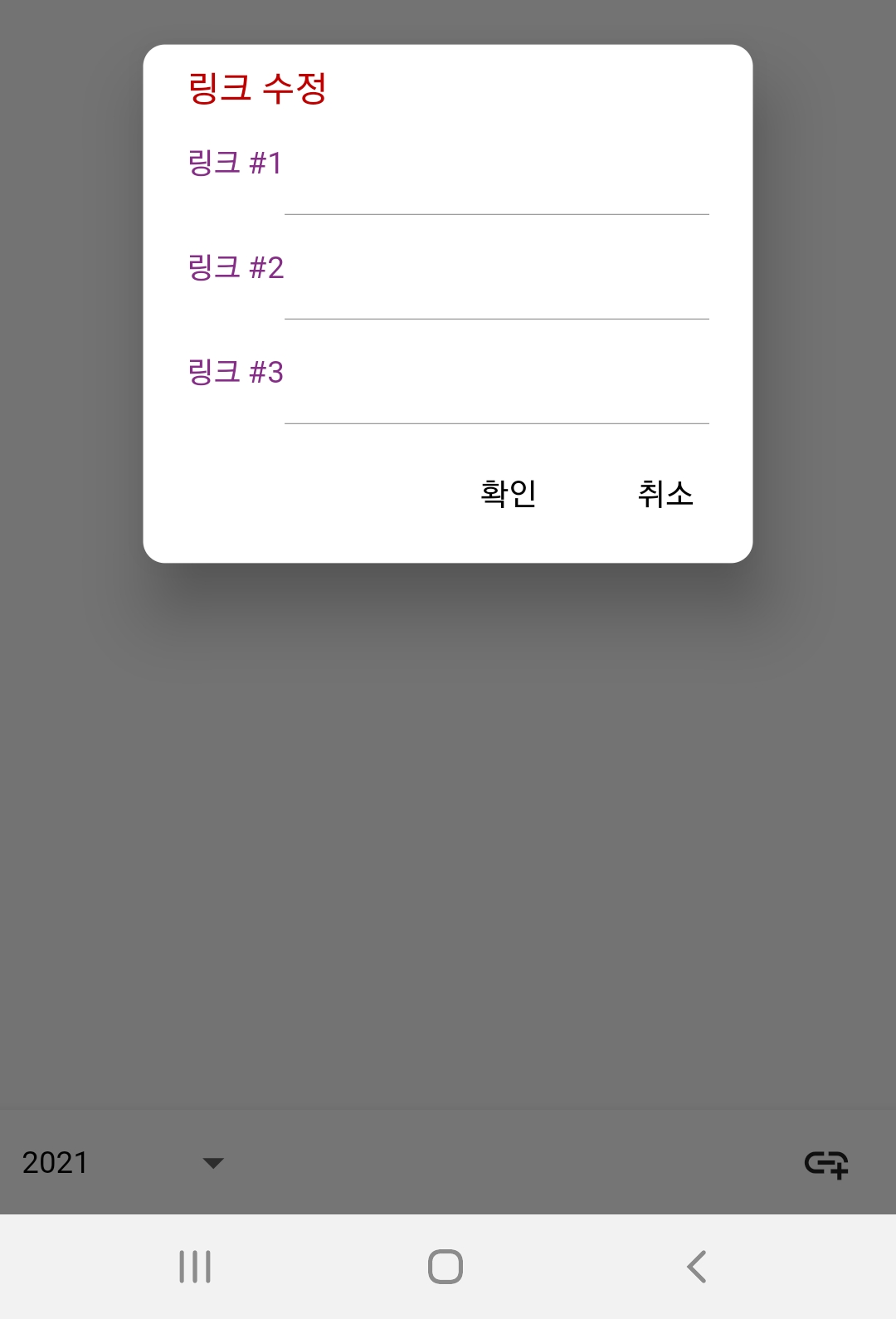 수정 화면에서는 오른쪽 아래 아이콘을 누르면 링크 수정 화면이 나타납니다.