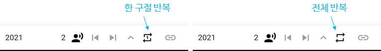 현재 재생 중인 구절이 숫자로 표시되고 일반적인 음악 재생 플레이어처럼 다른 구절로 이동하거나, 반복 버튼을 누름에 따라 한 구절 또는 전체 구절을 반복 재생할 수 있습니다.